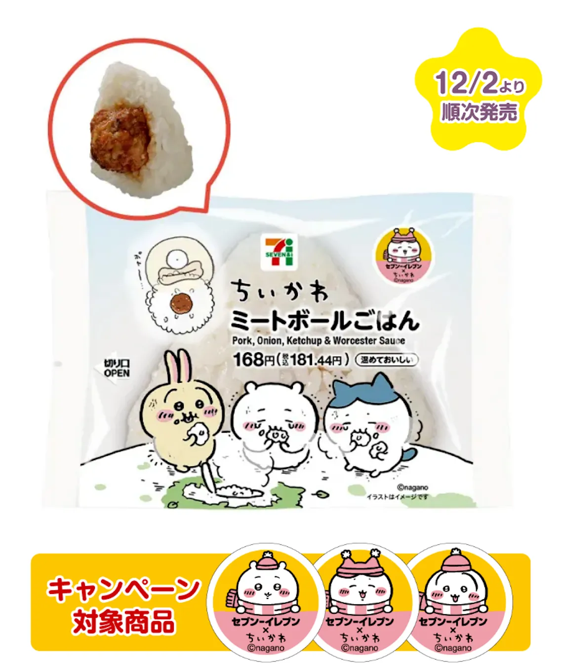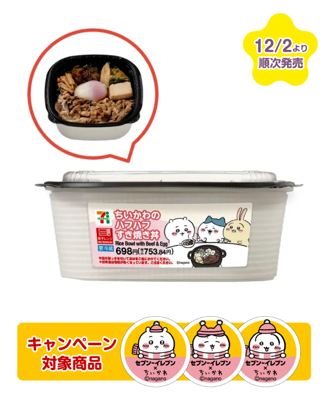 【セブンイレブン×ちいかわ】「ちいかわのハフハフすき焼き丼」「ハチワレのカレーまん」「うさぎのピザまん」など12/2(火)発売!
