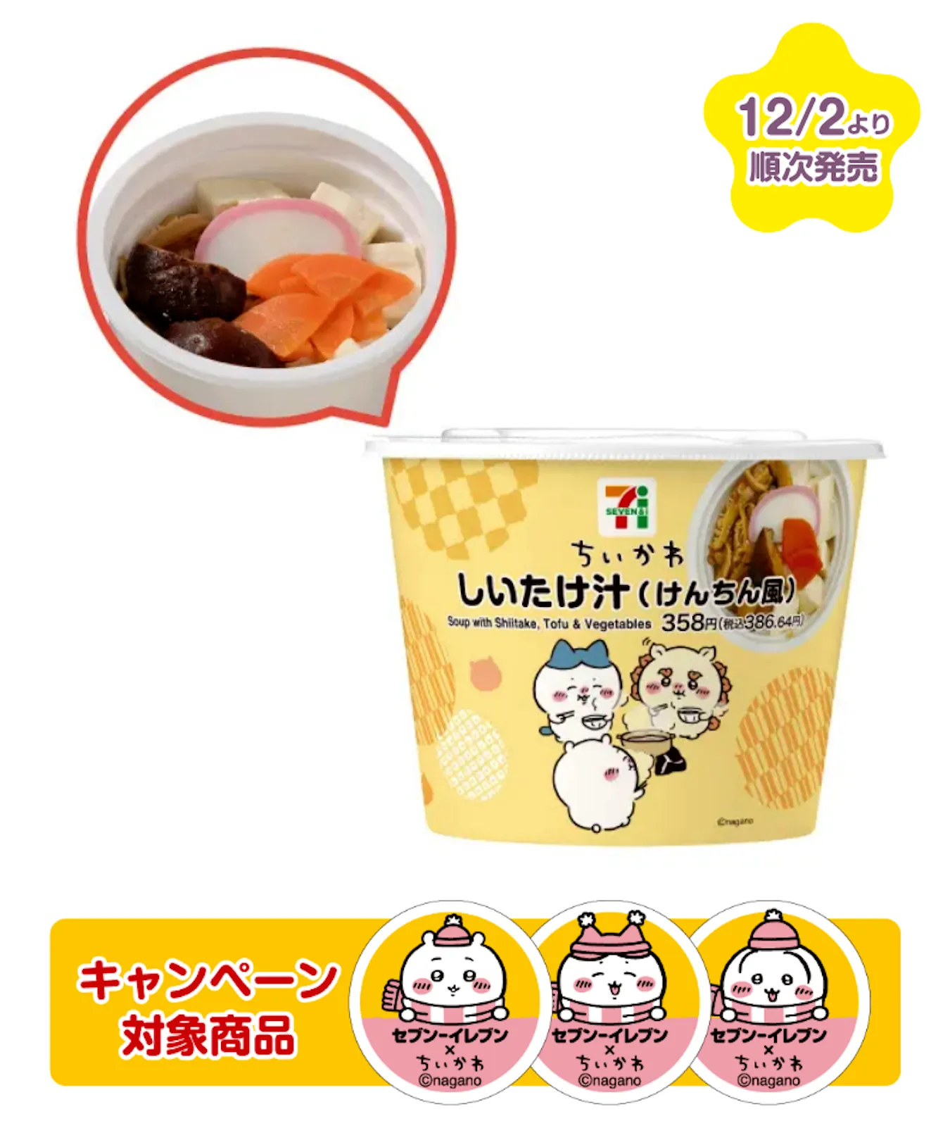 「ちいかわ×セブンイレブン」コラボフードは、2025年12月2日(火)から全国のセブンイレブンで順次登場します。