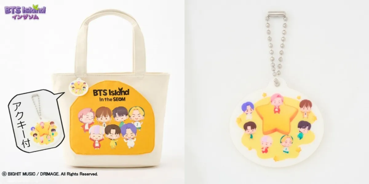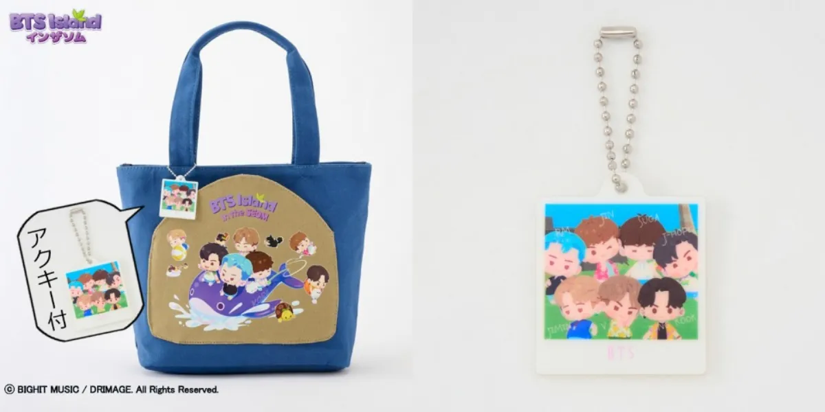 「BTS Island:インザソム」のアクリルキーホルダー付きトートバッグ。かわいいアクリルキーホルダー付きで、さりげなく“推しがいる毎日”を叶えてくれます。