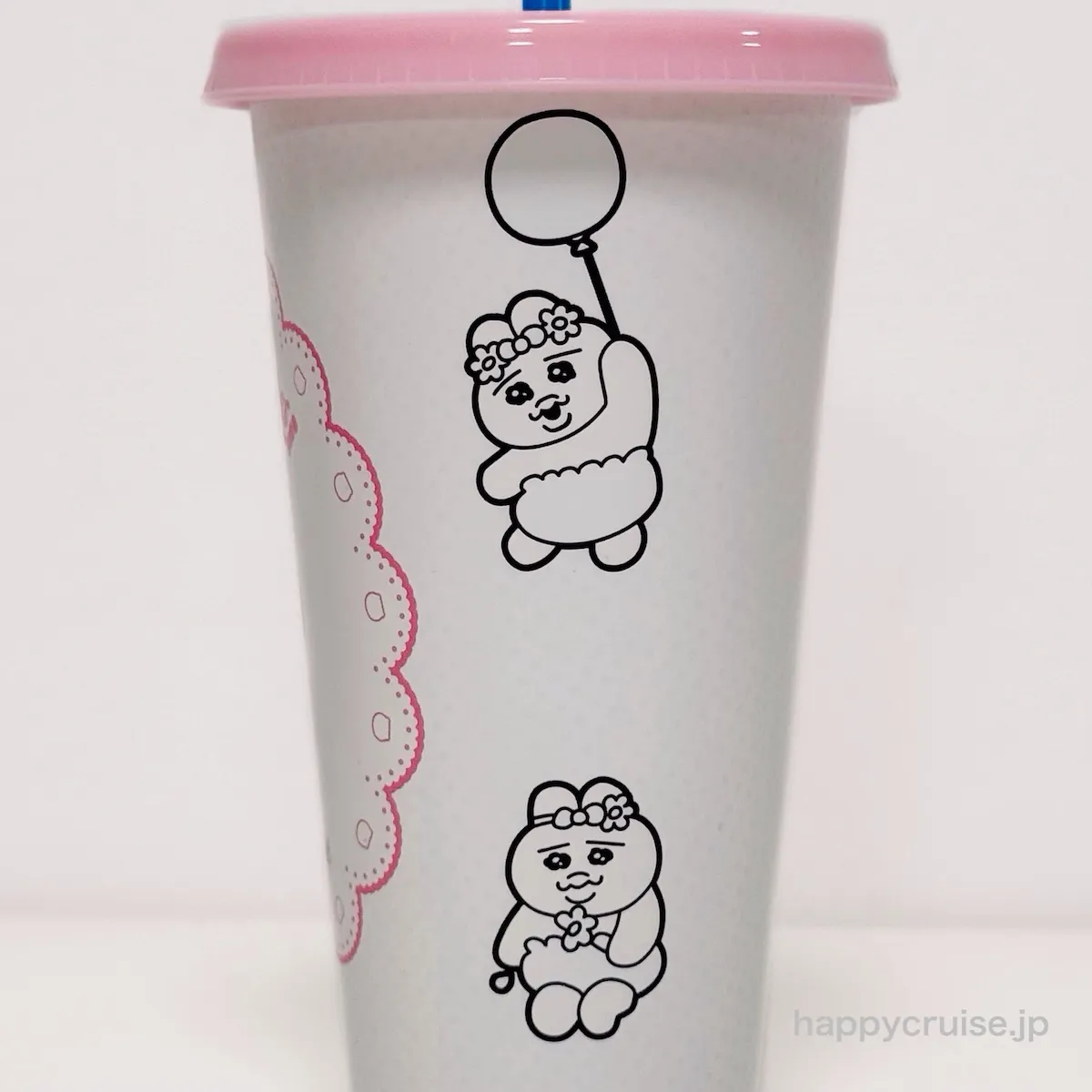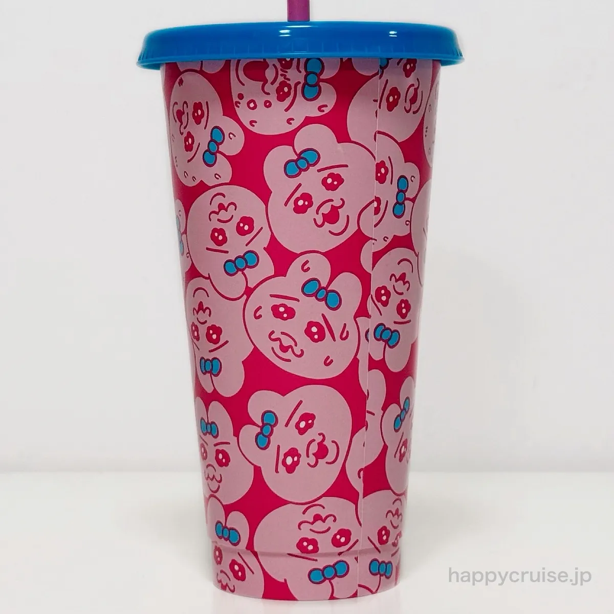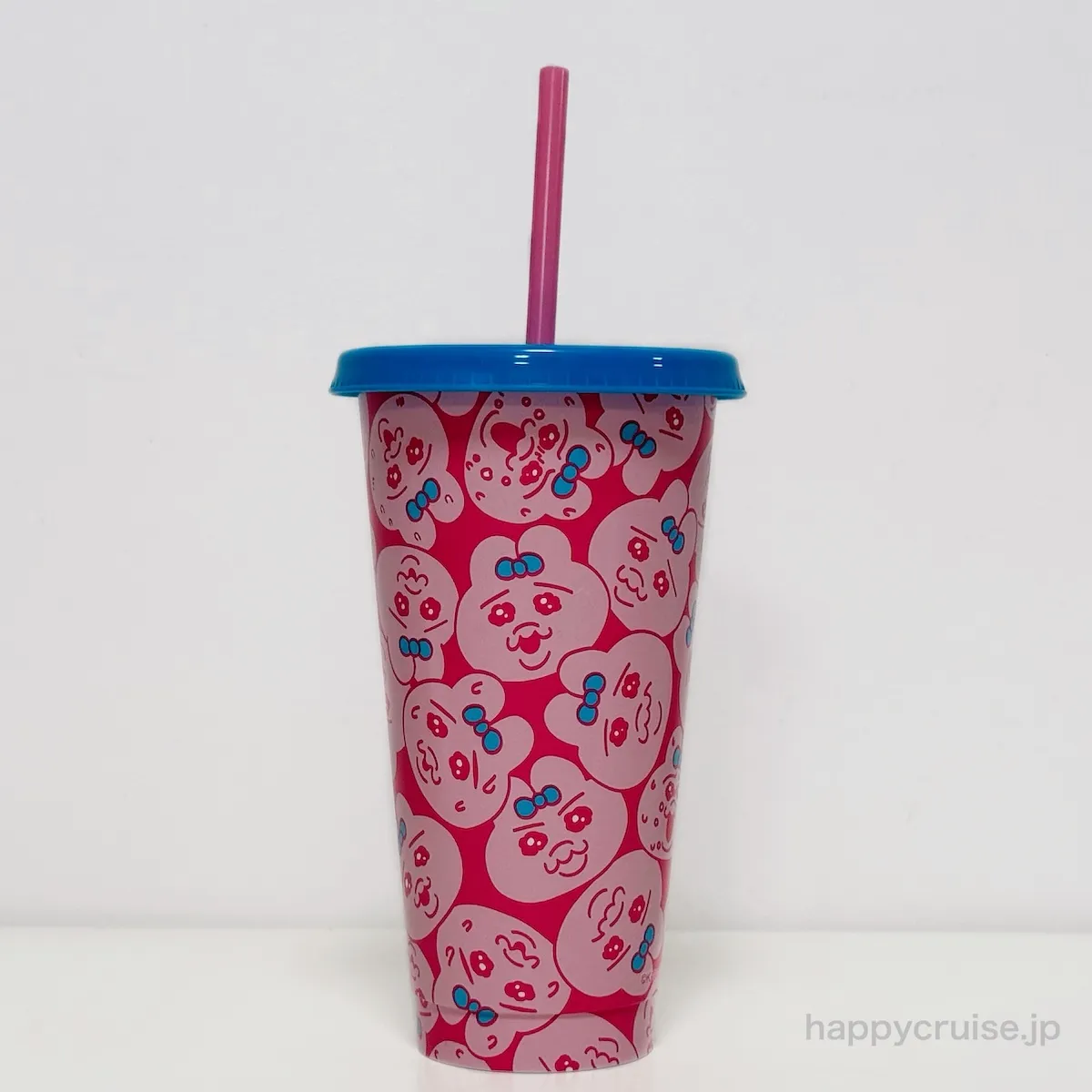 冷たいドリンクを入れると、おぱんちゅうさぎがピンクに色づき、お花やドット柄が登場しました!まるで魔法のように印象がガラリとチェンジ!