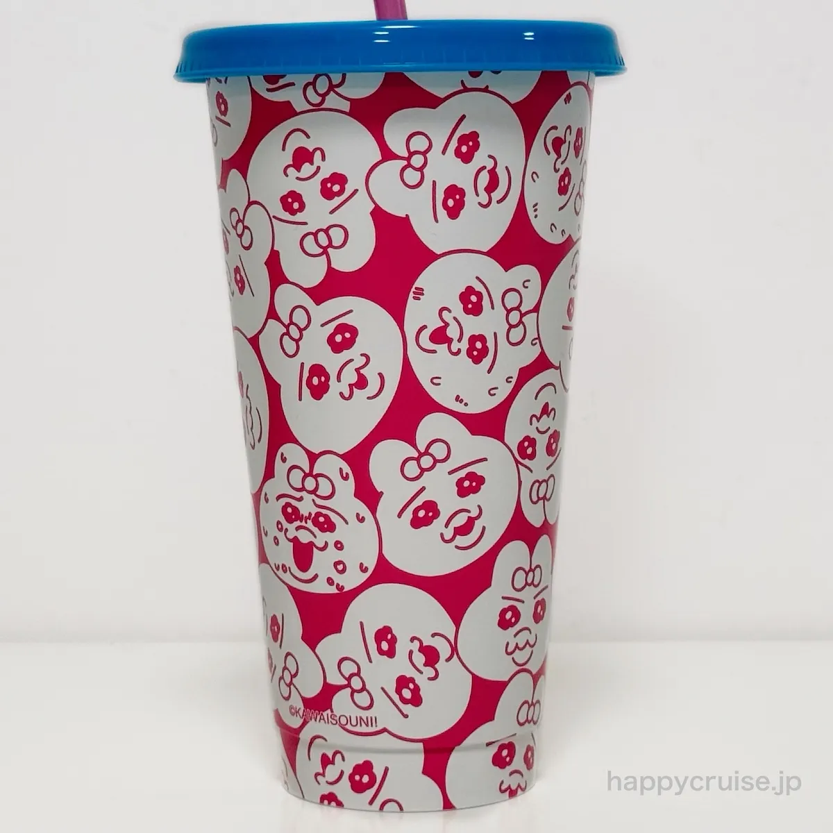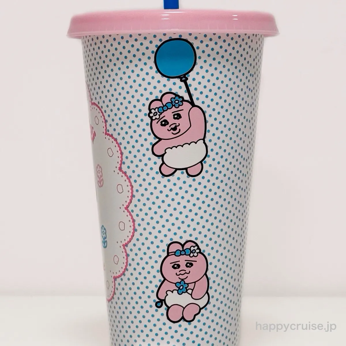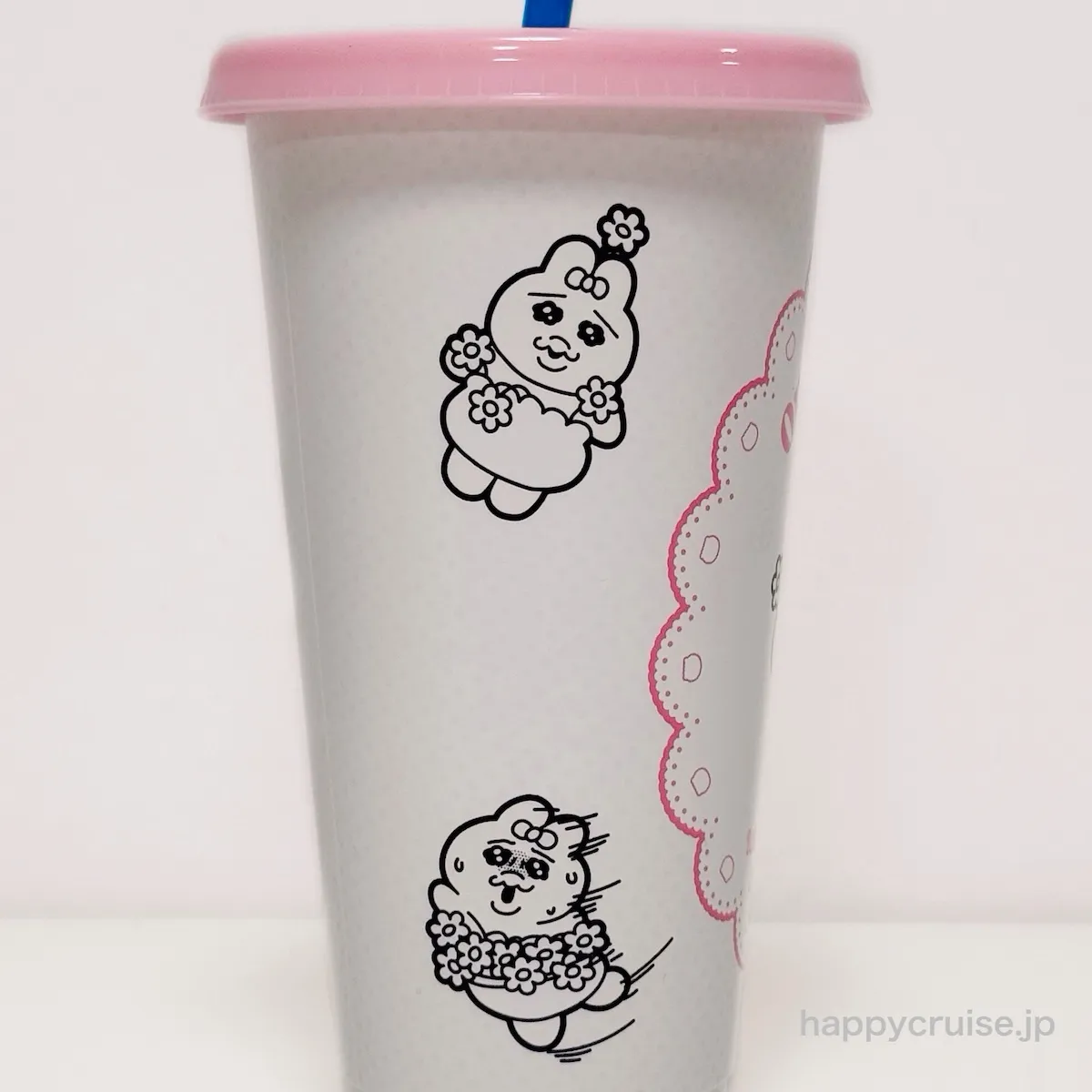 冷たいドリンクを入れると、おぱんちゅうさぎがピンクに色づき、お花やドット柄が登場しました!まるで魔法のように印象がガラリとチェンジ!