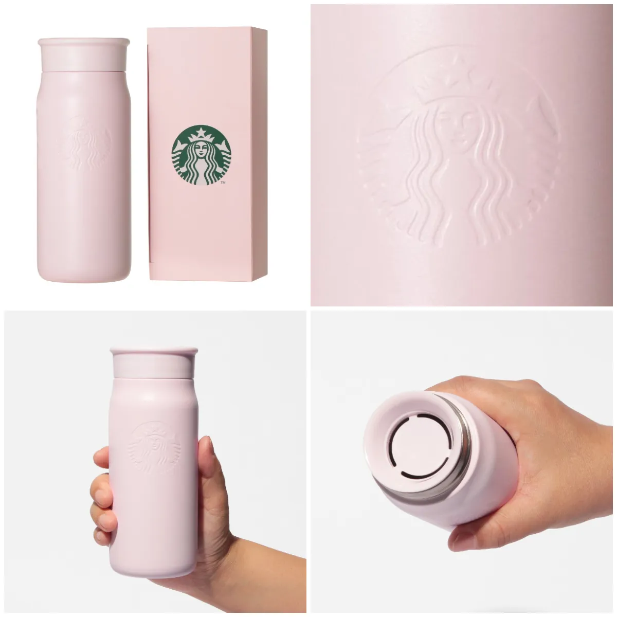 やわらかなピンクベージュにさりげなく浮かぶサイレンロゴが印象的なミニボトル。マットな質感が手にしっくりなじみ、上品で落ち着いた雰囲気に仕上がっています。保温・保冷ができる二重構造で、毎日のドリンクタイムを快適にサポート。ボックス付きで、特別感のあるギフトとしてもぴったりです。