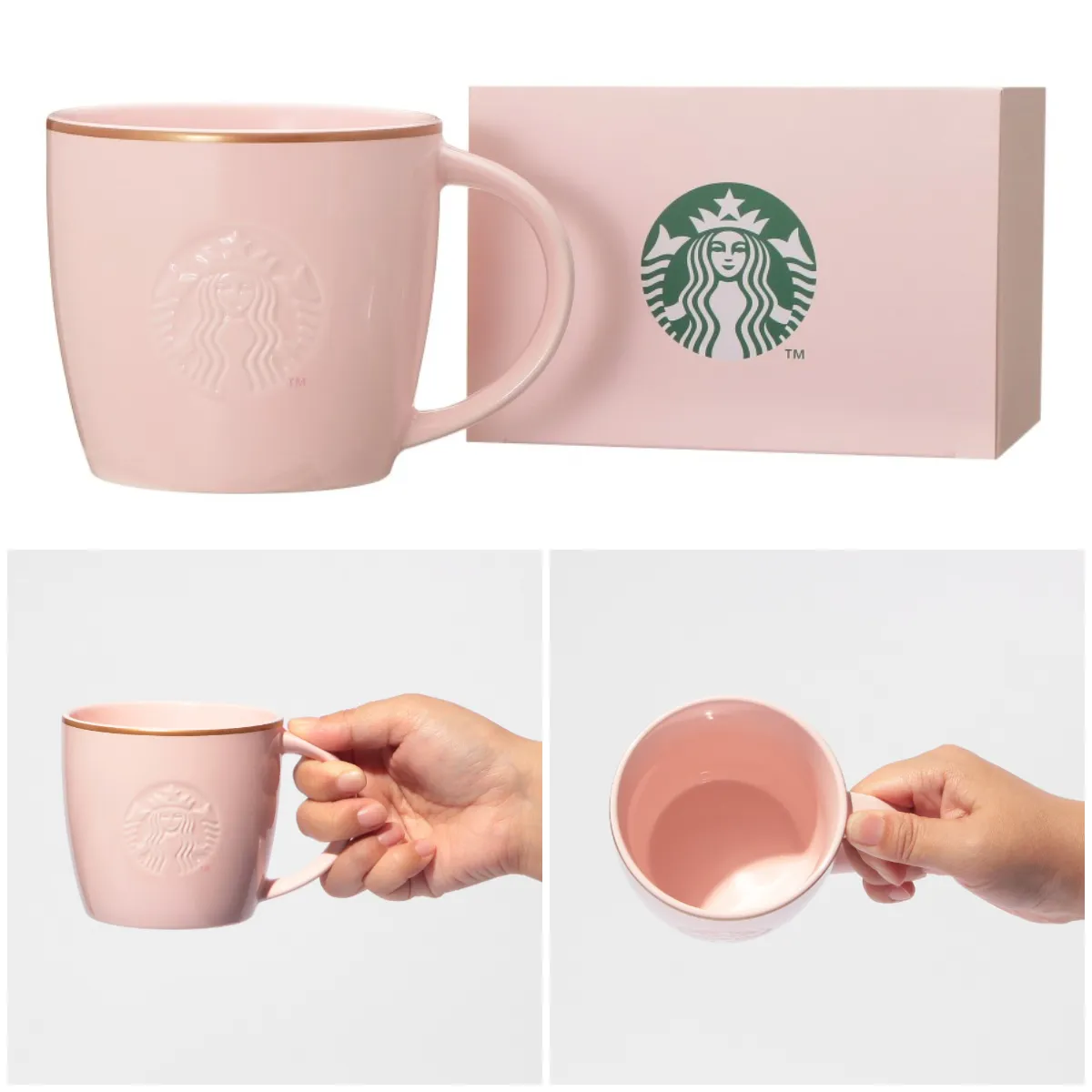 ② ギフトボックス入り ロゴマグ ピンクベージュゴールドリム 355ml ¥2,600