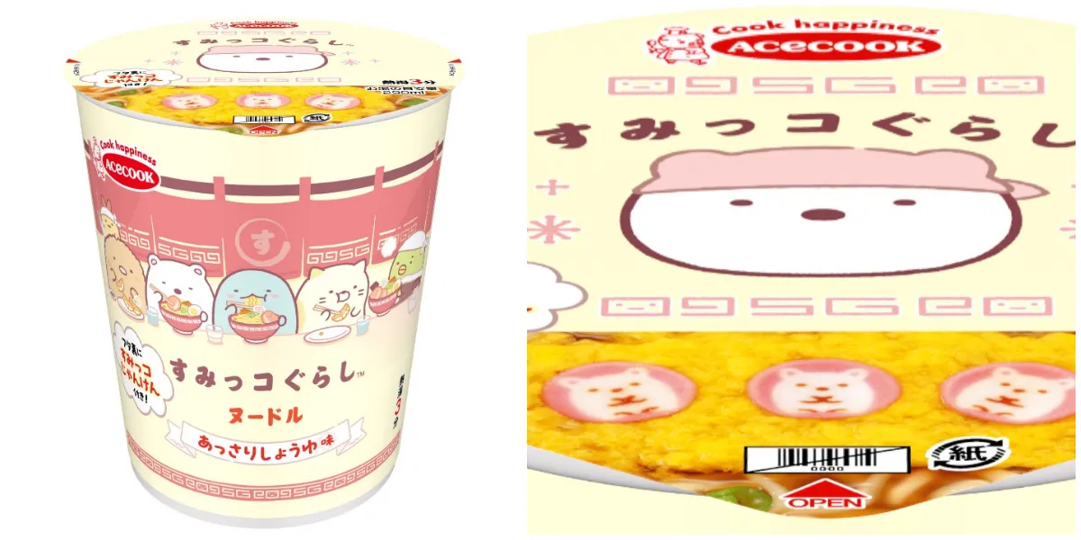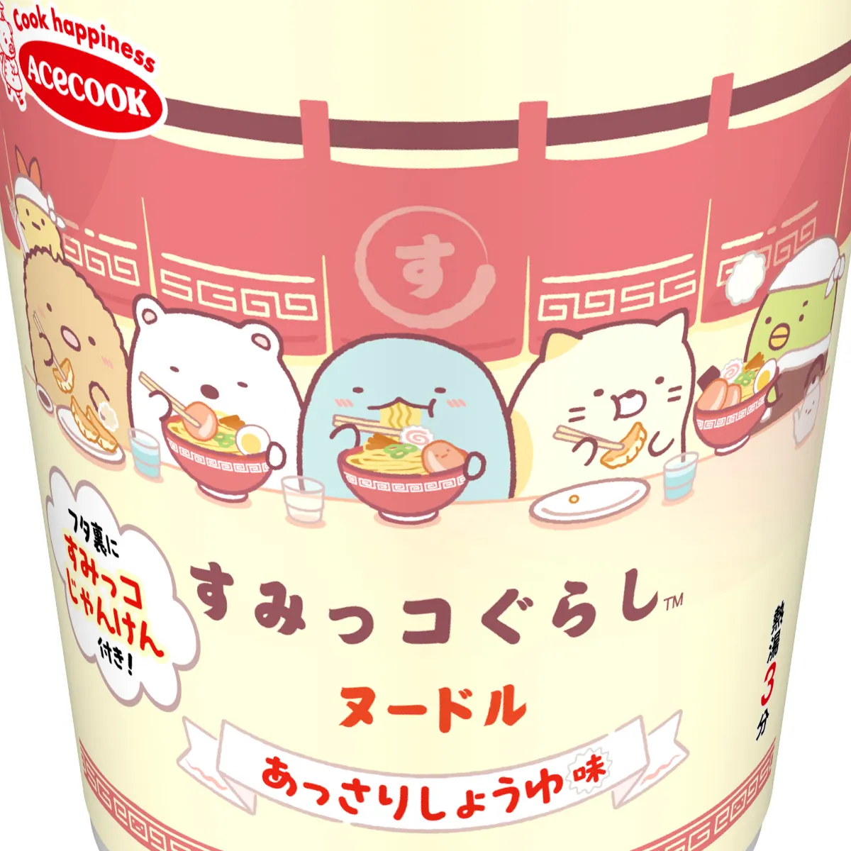 2012年に誕生したサンエックスの人気キャラクター。ちょっぴり内気で、すみっこが好きという等身大の感覚を持つ仲間たちが幅広い世代に支持されています。今回は、即席めんブランドでおなじみのエースコックと初コラボ。やさしい味わいの一杯に、すみっコらしい癒やしと可愛さがぎゅっと詰め込まれています。推し活の差し入れや、お家時間の気分転換にもぴったりです。