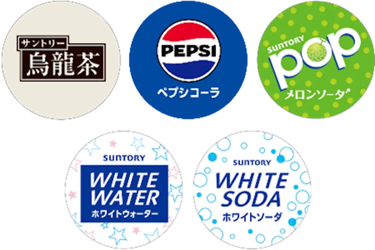 対象ドリンク(ウーロン茶・ペプシコーラ・ポップメロンソーダ・ホワイトウォーター・ホワイトソーダ)に、コラボ限定アクリルスタンドがランダムで1個ついてきます。※一部店舗では対象ドリンクが異なる場合があります。