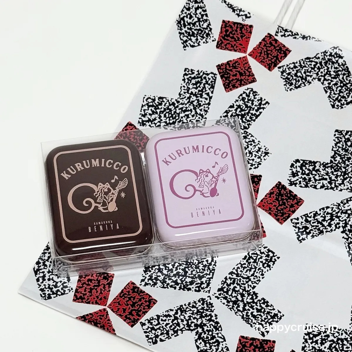 DA PUMP U-YEAHさんが「見た目の可愛さと美味しさで手土産や現場の差し入れにもぴったり!」とおすすめする<鎌倉紅谷>クルミッ子。今回のイベントではタカミー風デザインのピンクと茶色のミニ缶2缶セットで登場です。