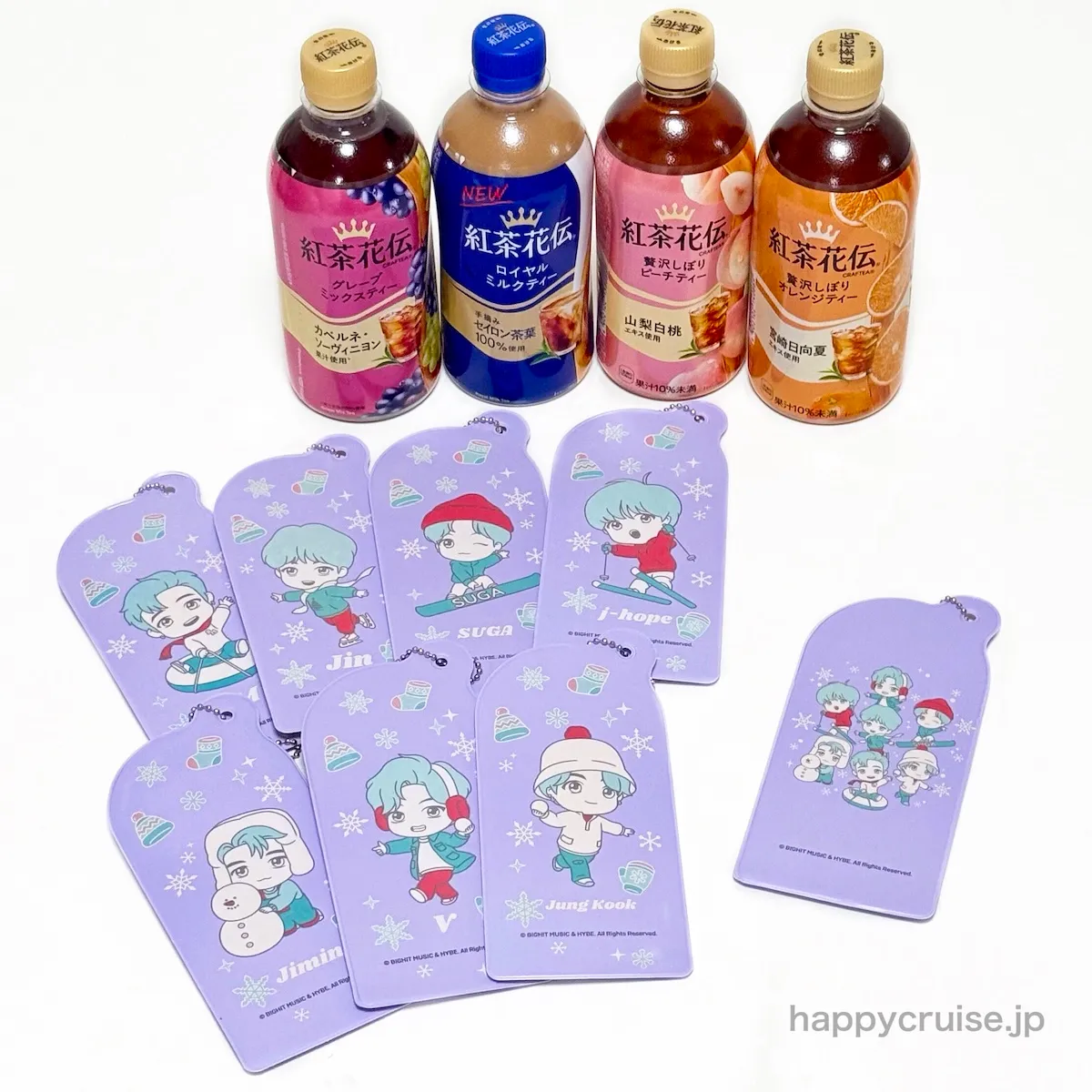BTS【TinyTAN(タイニータン)×紅茶花伝】「紅茶花伝 ロイヤルミルクティー」のリニューアルにあわせて、BTSメンバー7人のかわいいキャラクター「TinyTAN(タイニータン)」とのコラボレーション企画が2025年10月20日(月)よりスタート!期間中、紅茶花伝を4本買うとTinyTAN(タイニータン)のオリジナルパスケースが先着でもらえます。おまけとは思えないほどの可愛いアイテムですので、めぐり逢えたらチェックしてみてください。