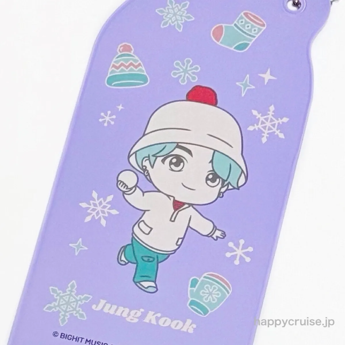 パスケースは表にも裏にも絵柄がある両面デザイン。にっこり笑顔で雪合戦を楽しむJung Kook。Vと一緒に遊んでいる!?