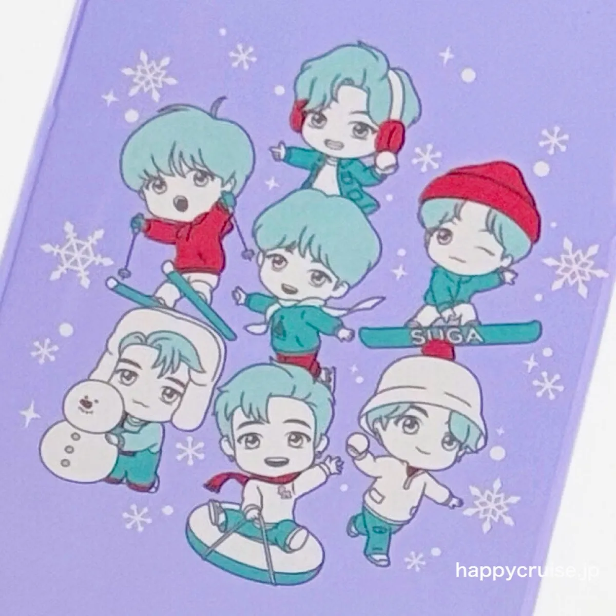 パスケースは表にも裏にも絵柄がある両面デザイン。かわいい冬支度で雪だるまを作るJiminにキュン。