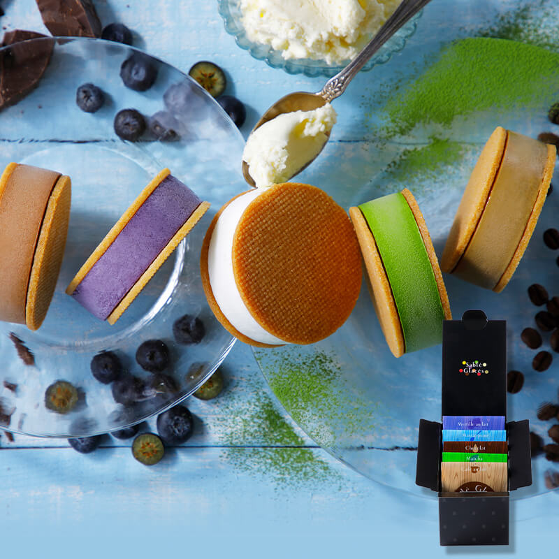 グラッシェルで人気のサブレグラッセに、この夏限定で2つの新フレーバーが仲間入り。ショコラ、抹茶、カフェオレに加え、紫色が鮮やかなブルーベリーフレーバー「ミルティーユオレ」と、雪のように真っ白なマスカルポーネフレーバー「マスカルポーネ」が仲間入り。味わいはもちろん、見た目もより華やかになり、夏のギフトにもバッチリです。