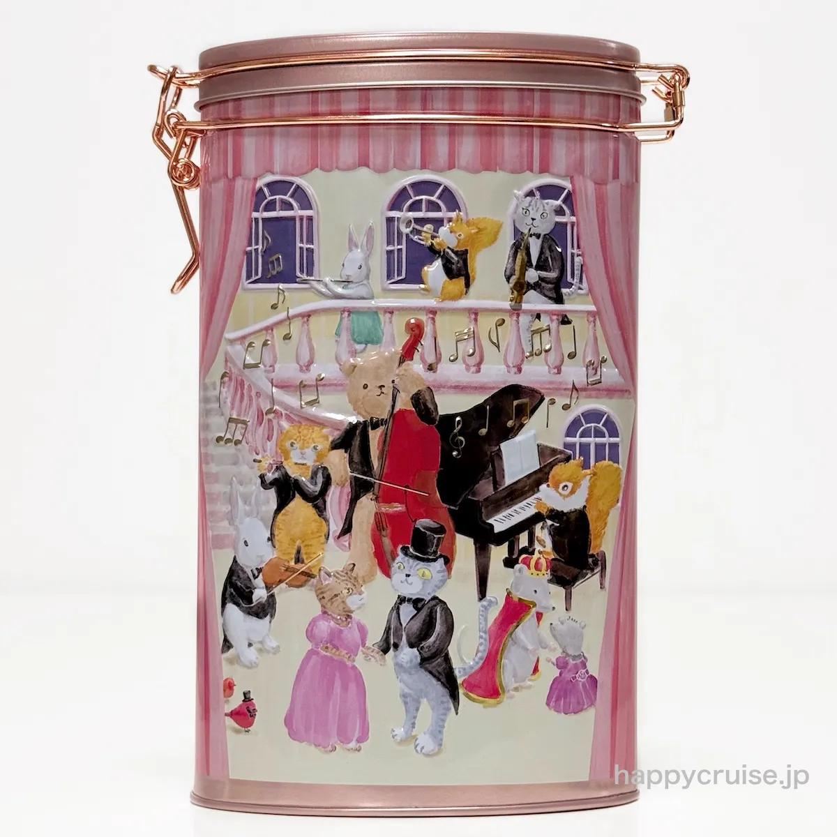 くま、ねこ、りす、うさぎたちの音楽隊が登場する華やかなデザイン。